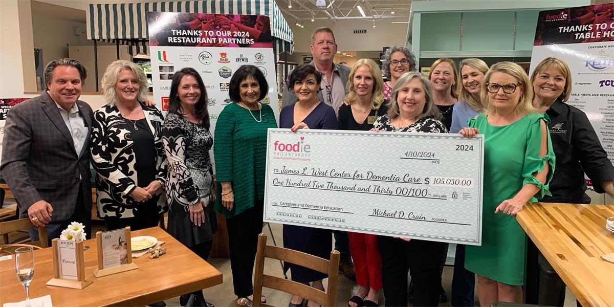 "We are thrilled to present this record-breaking donation to the James L. West Center for Dementia Care," said Joanna Crain, Co-Founder of Foodie Philanthropy. "Their dedication to serving individuals impacted by dementia aligns perfectly with our mission to make a positive impact in our community. We are proud to support their efforts in providing vital education and support programs for caregivers and healthcare professionals."